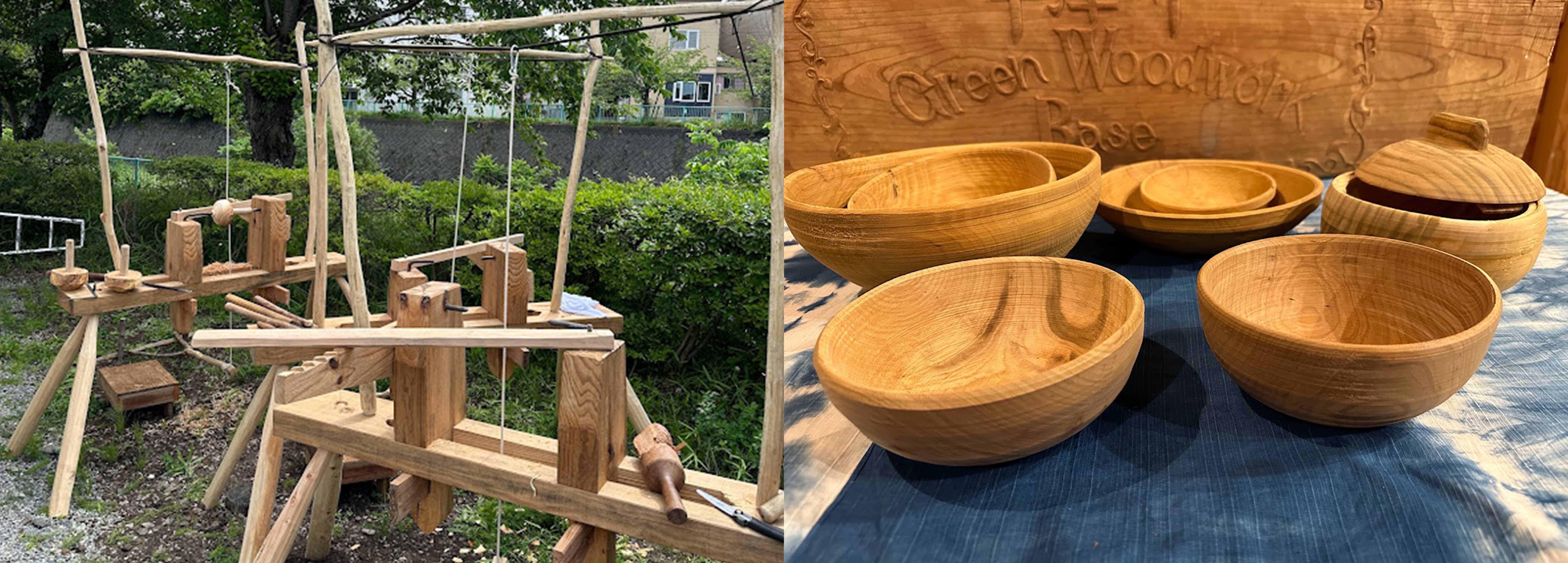 Use Western-style foot Fumi Rokuro to grind raw wood into a bowl.