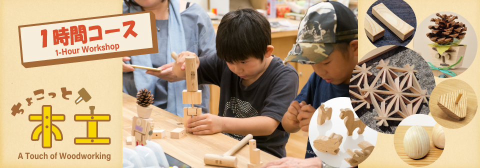 You can choose one of 1-hour's 6 types of work kits, such as Rokko-san tree eggs and Kumiki puzzles.