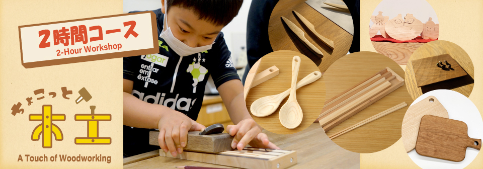 You can choose one of 2-hour's six types of work kits, such as Hinoki spoons and square plates.