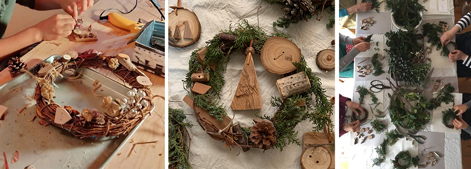 We make Christmas wreaths and ornaments while enjoying the expressions of various trees by modifying the branches and fragments of trees.