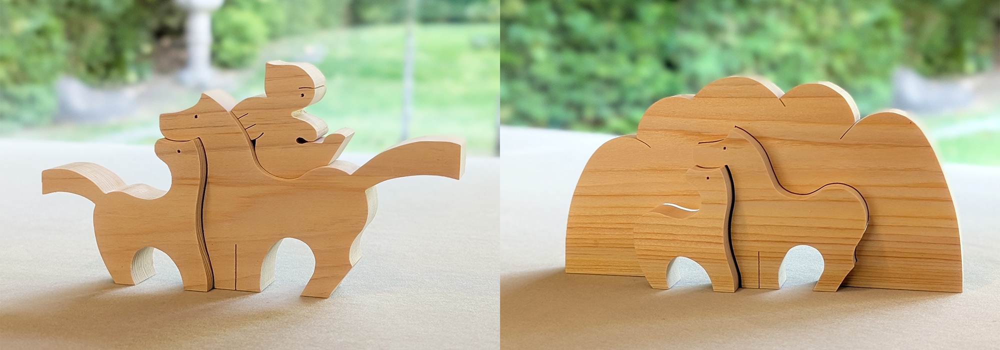We make zodiac doll (horse) designed by Kumiki writer Saburo Koguro with electric thread saw.
