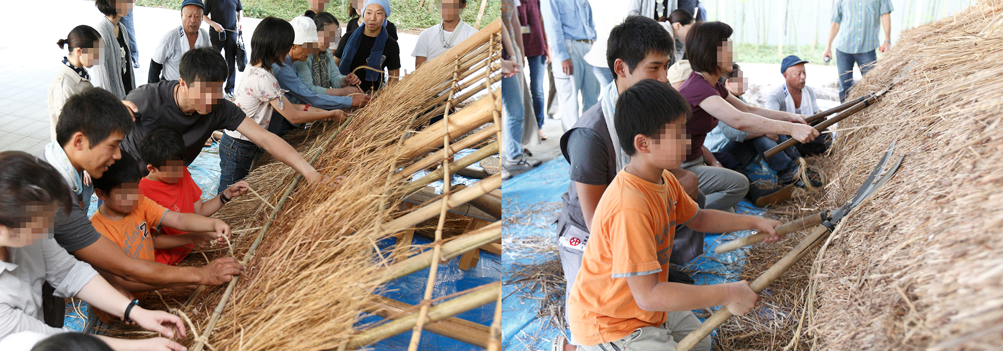 This is a participatory event where you can actually experience traditional thatched roof technology. A bundle of Japanese pampas grass is carefully placed on the base of the roof, and at the end, you will experience the basic process of thatched roofing until the surface is adjusted using scissors. Under the guidance of craftsmen, it is a valuable opportunity to learn how to handle Kaya and how to shape the roof while moving hands. Why don't you realize the wisdom of traditional living and the depth of technology while facing natural materials?