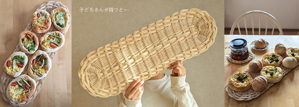 Weave a long tray using a rattan. It is a long and narrow tray with a sense of size that is not easily sold at the store.